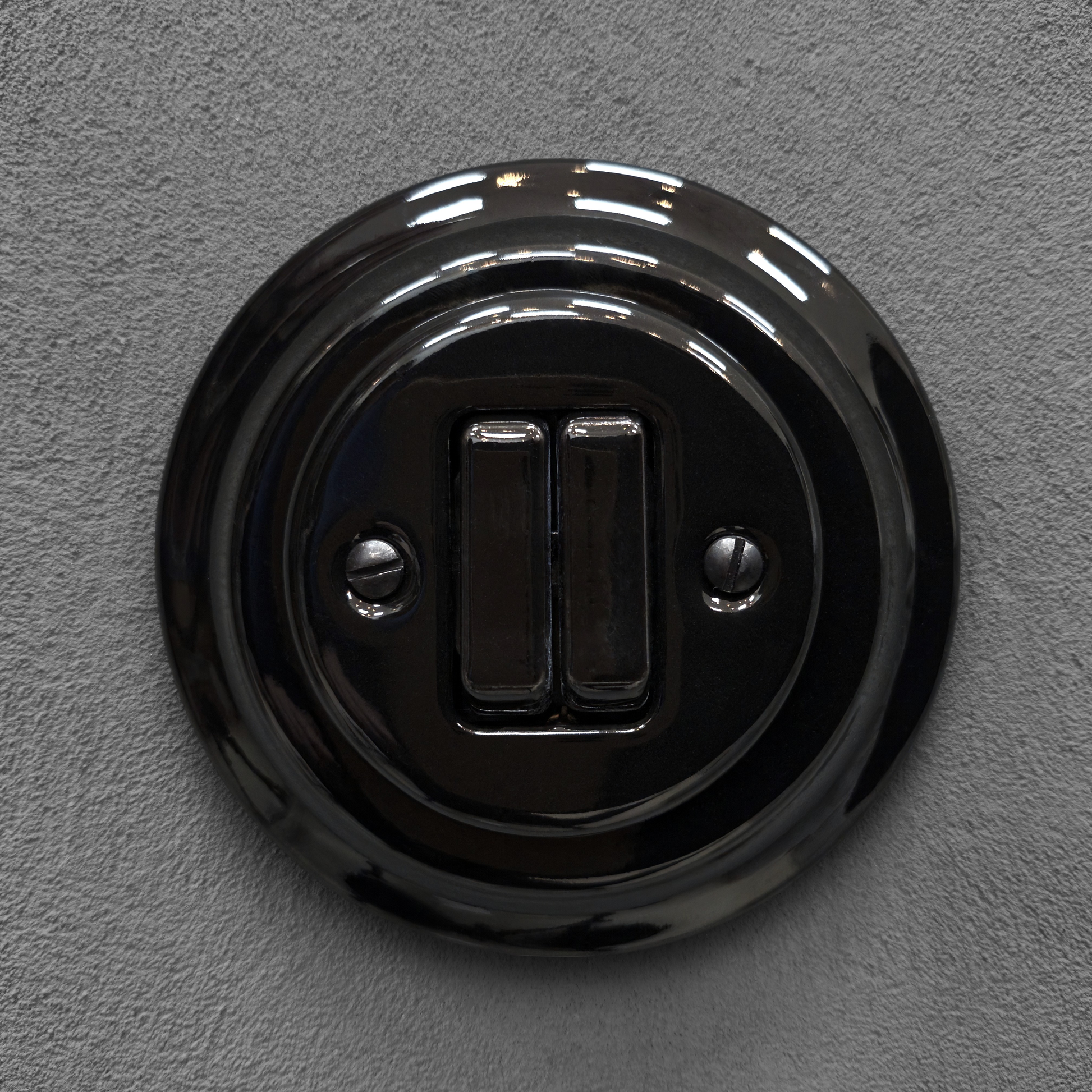 Light Switch Porcelain Loft Retro 2-gang Two-way Flush-Mounting Vintage Cottage Ceramic Black
