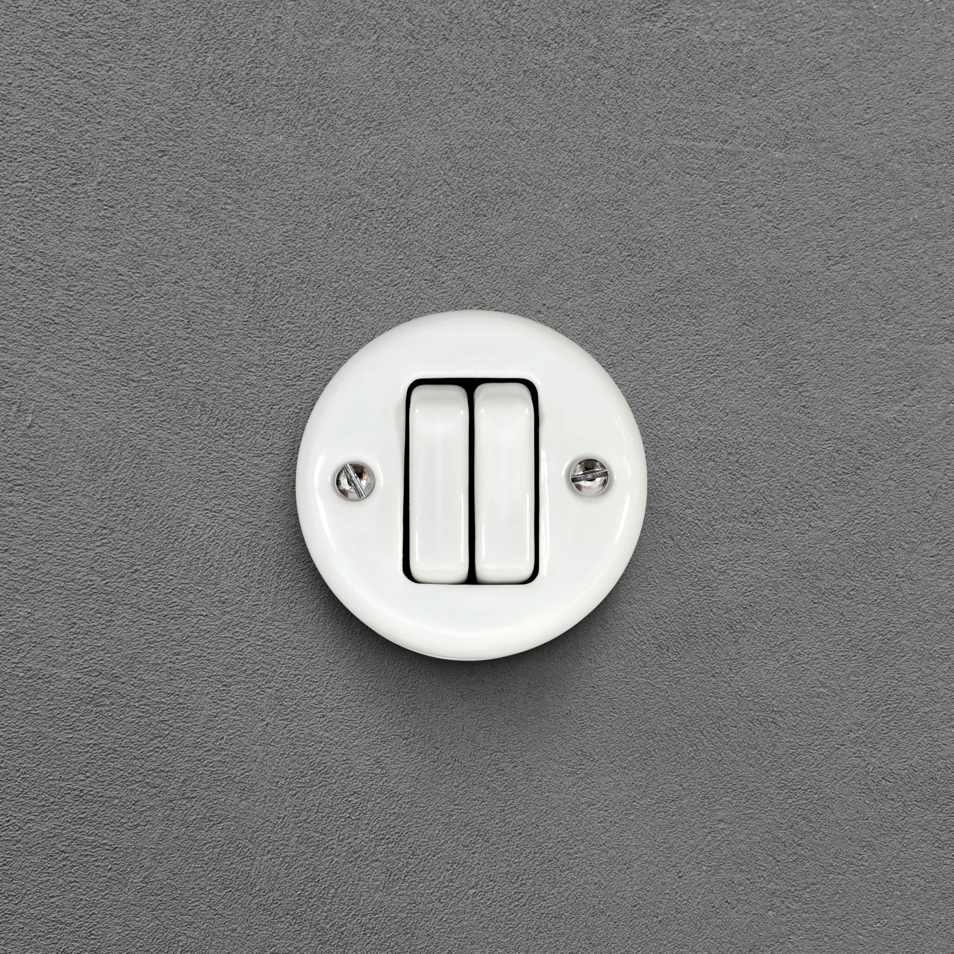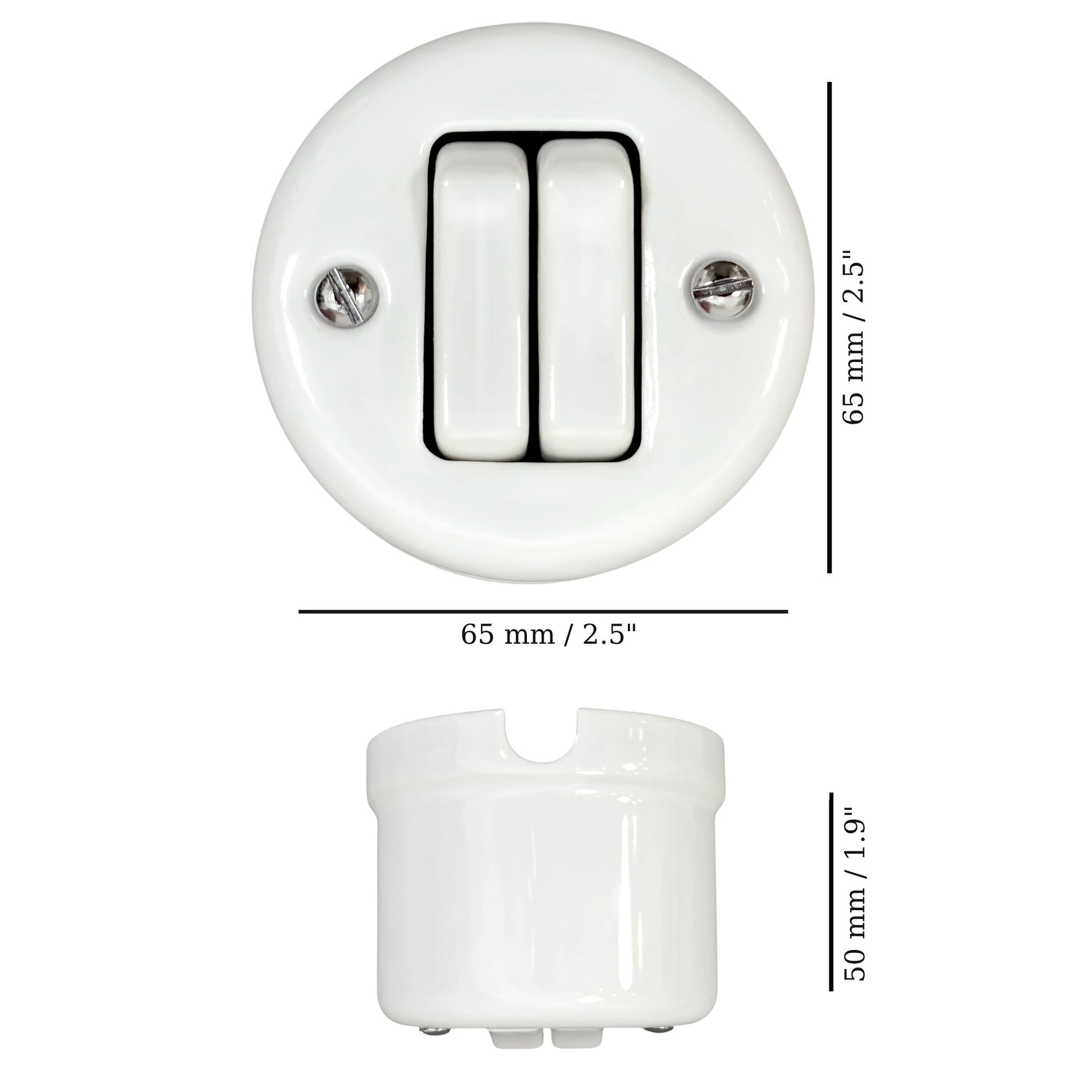 Light Switch Porcelain Loft Retro 2 Gang Two-way Surface-Mounting Vintage Cottage Ceramic White