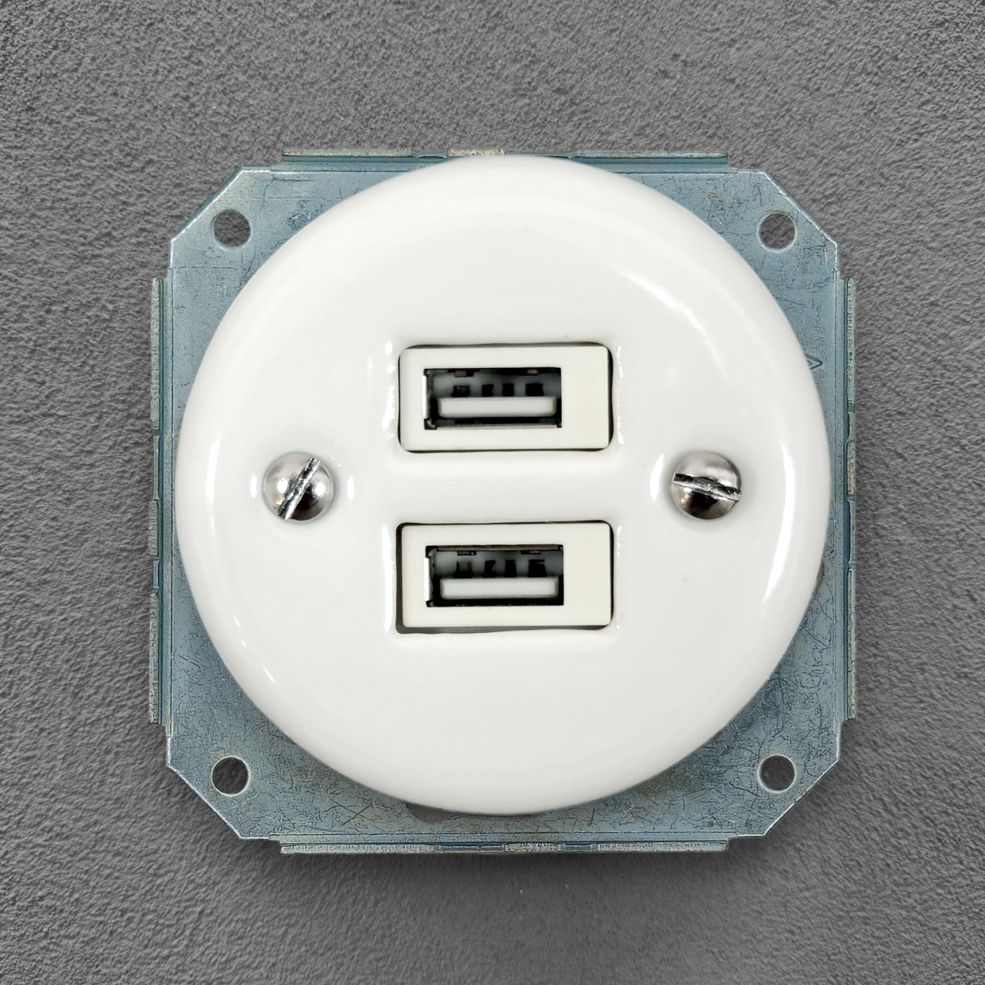 The retro style porcelain USB charging socket insert thanks to its minimalistic and elegant design perfectly fits any interior - from cottage to industrial. It's not only made with high quality materials but also can be used as a decorative accent for your home or other spaces.