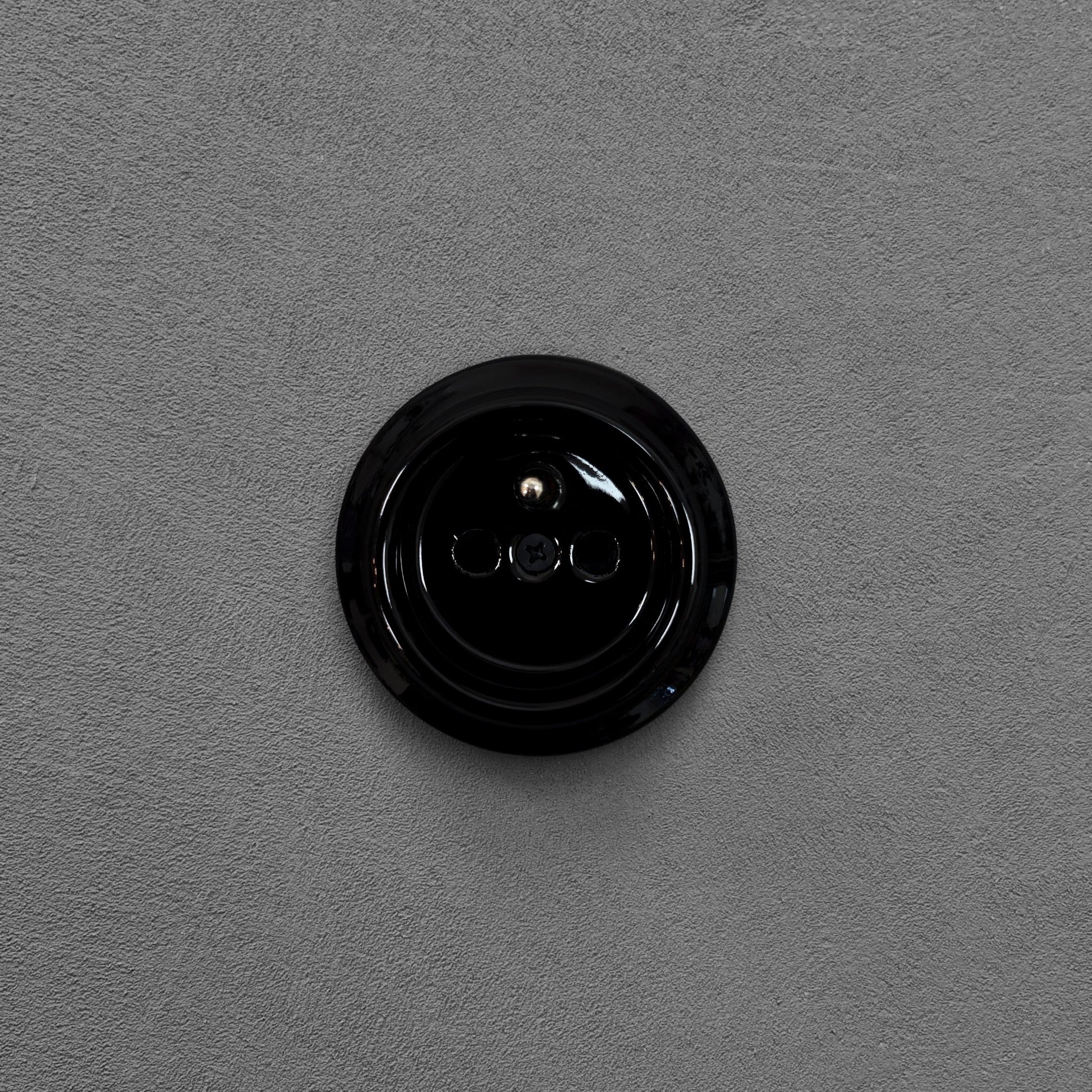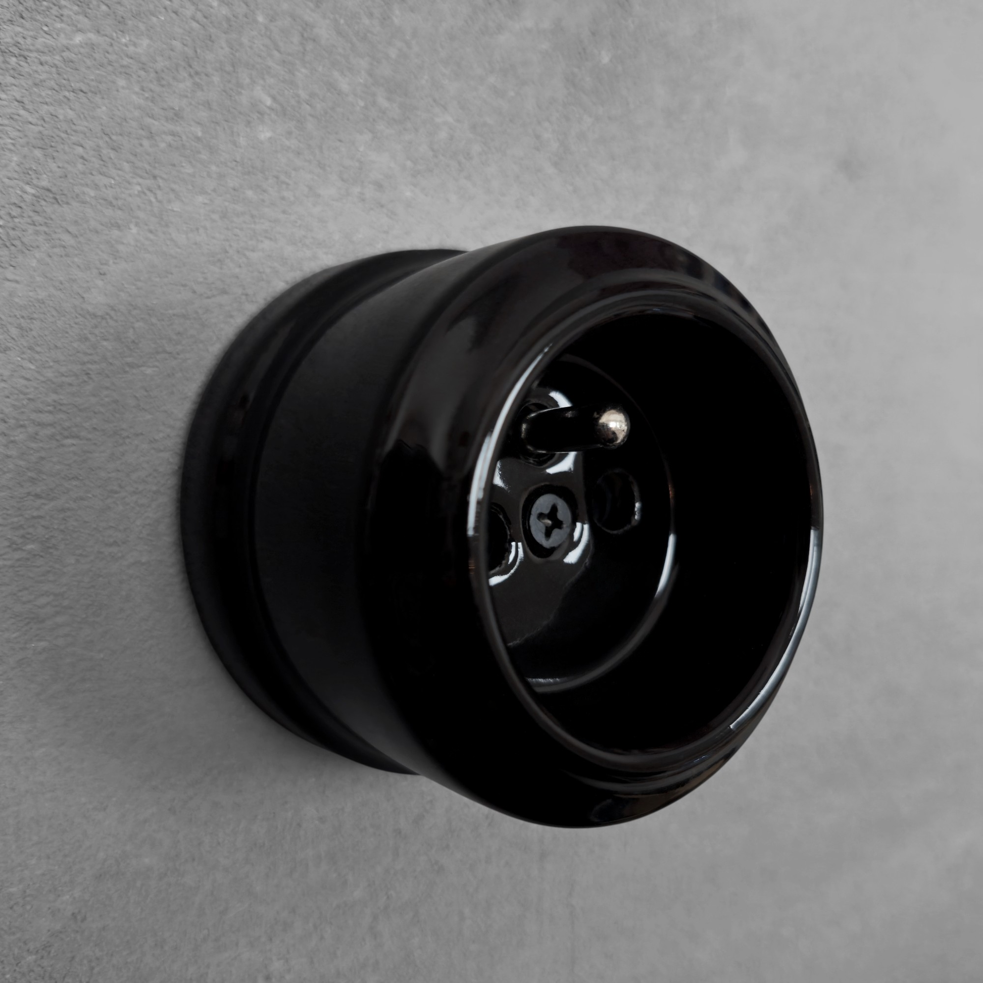 Power Socket Porcelain Loft Retro Electrical French Schuko Surface-Mounting Vintage Cottage Ceramic Black