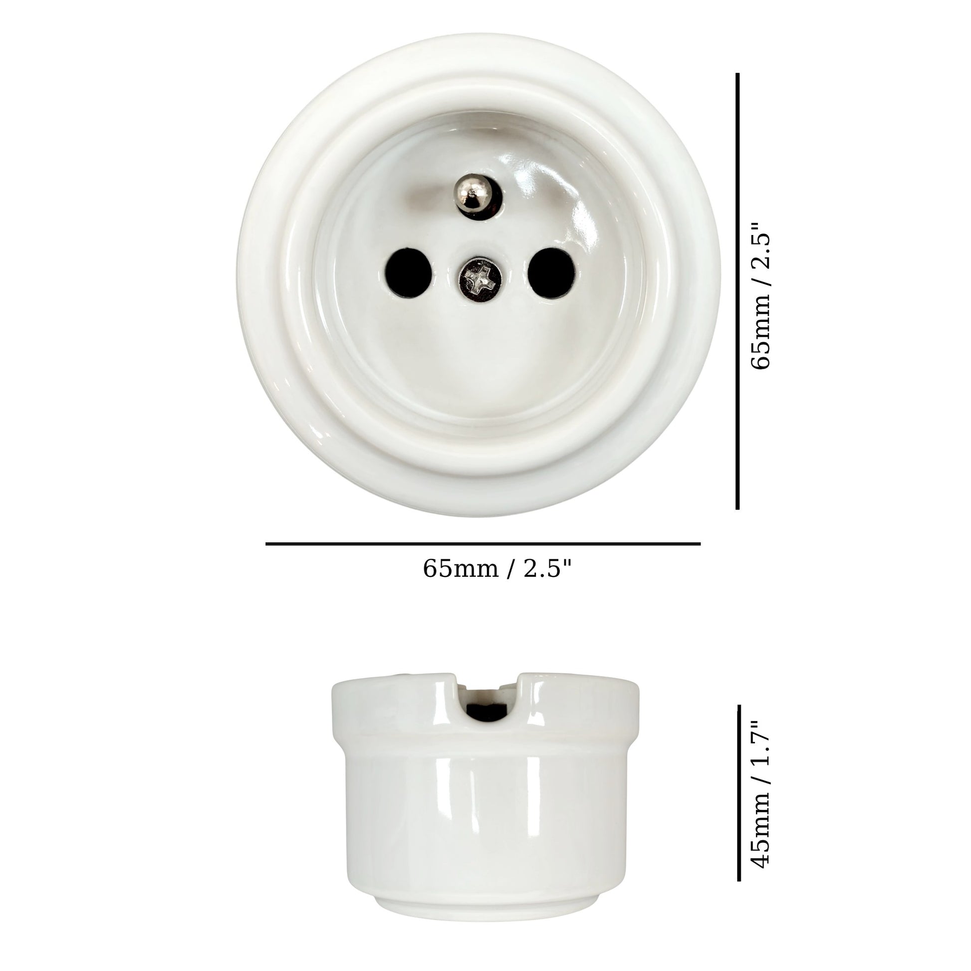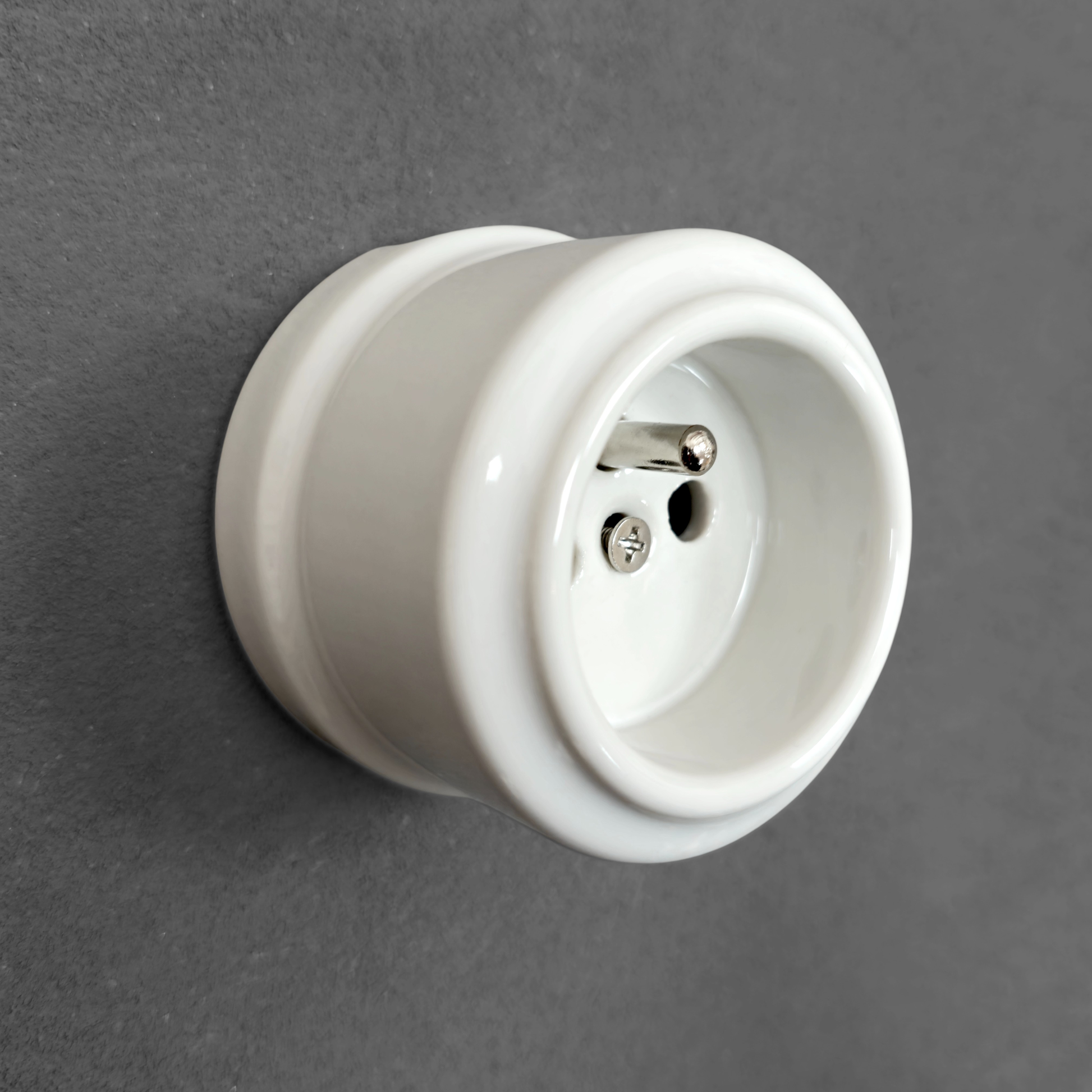 The retro style porcelain electrical power socket thanks to its minimalistic and elegant design perfectly fits any interior - from cottage to industrial. It's not only made with high quality materials but also can be used as a decorative accent for your home or other spaces.