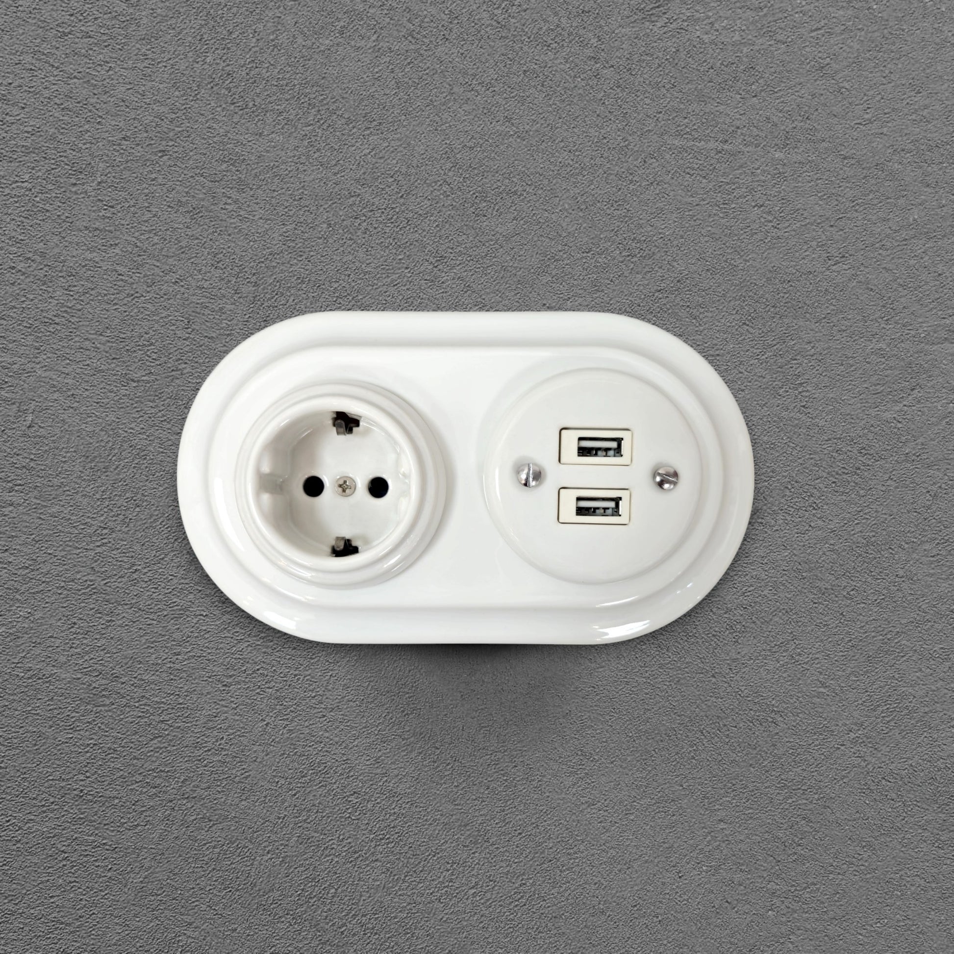 The retro style porcelain USB charging socket and electrical power socket set thanks to its minimalistic and elegant design perfectly fits any interior - from cottage to industrial. It's not only made with high quality materials but also can be used as a decorative accent for your home or other spaces.