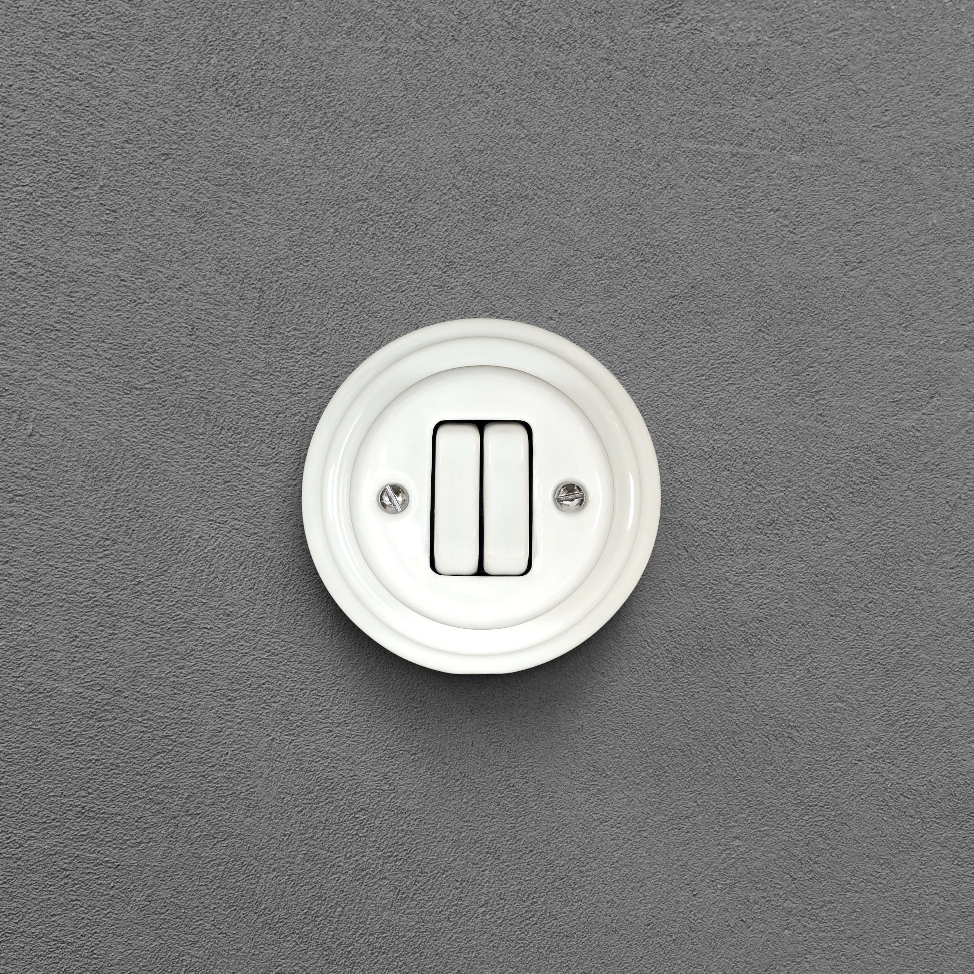 Surface-Mounting 2 Gang Two-Way Light Switch Porcelain Loft Retro Vintage Cottage Ceramic White