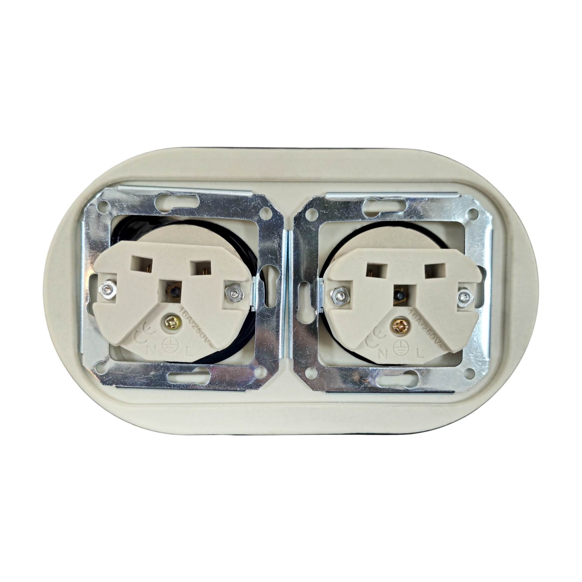 The flush double frame retro style porcelain electrical power socket thanks to its minimalistic and elegant design perfectly fits any interior - from cottage to industrial. It's not only made with high quality materials but also can be used as a decorative accent for your home or other spaces.