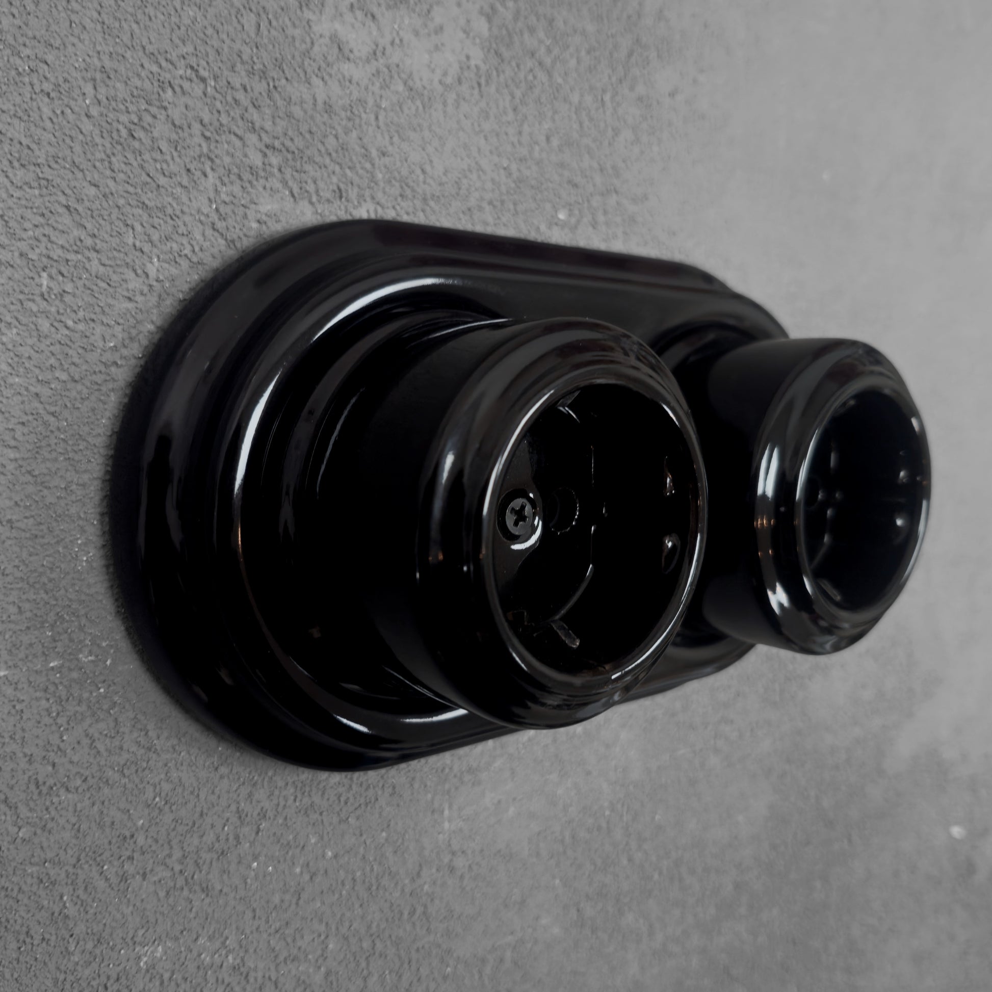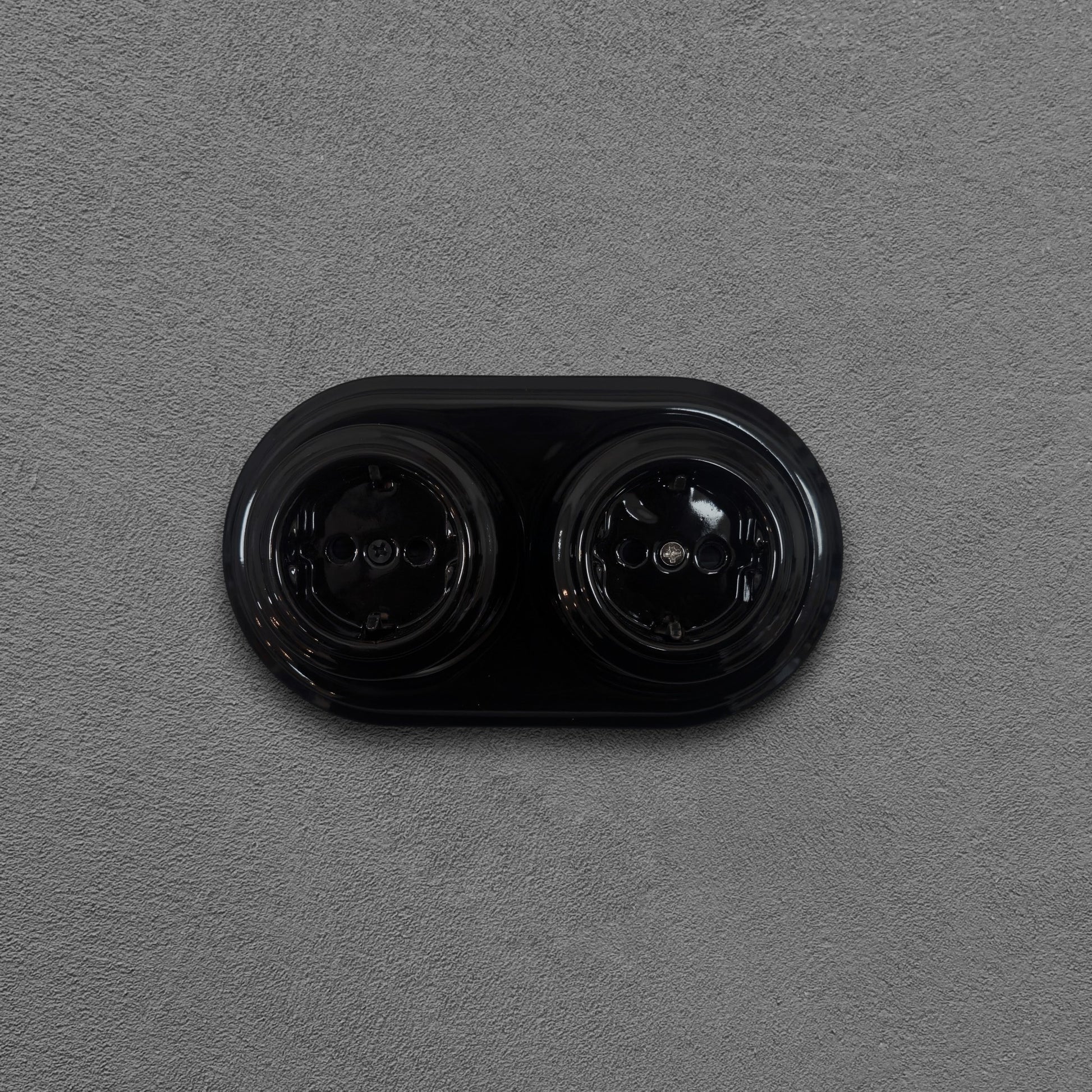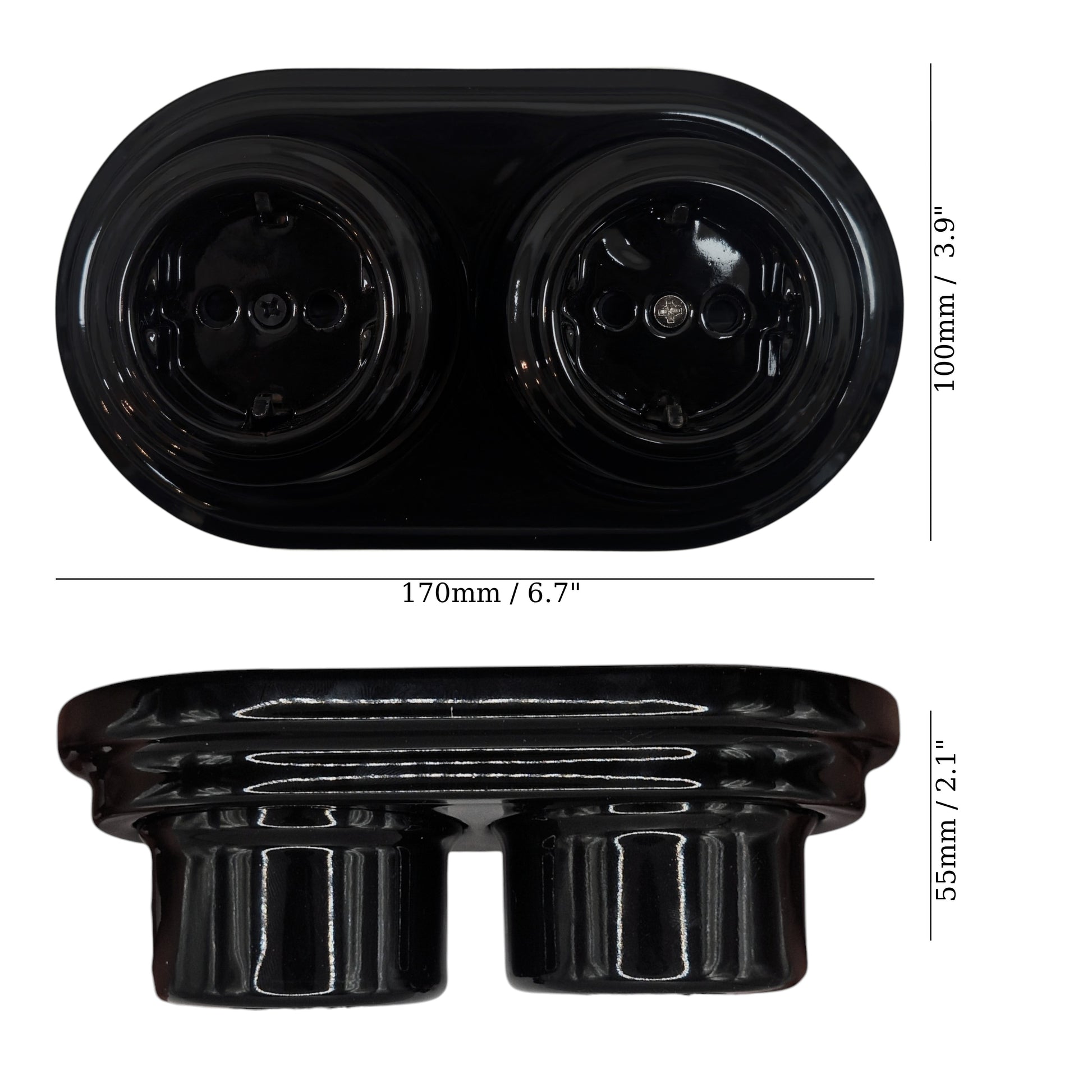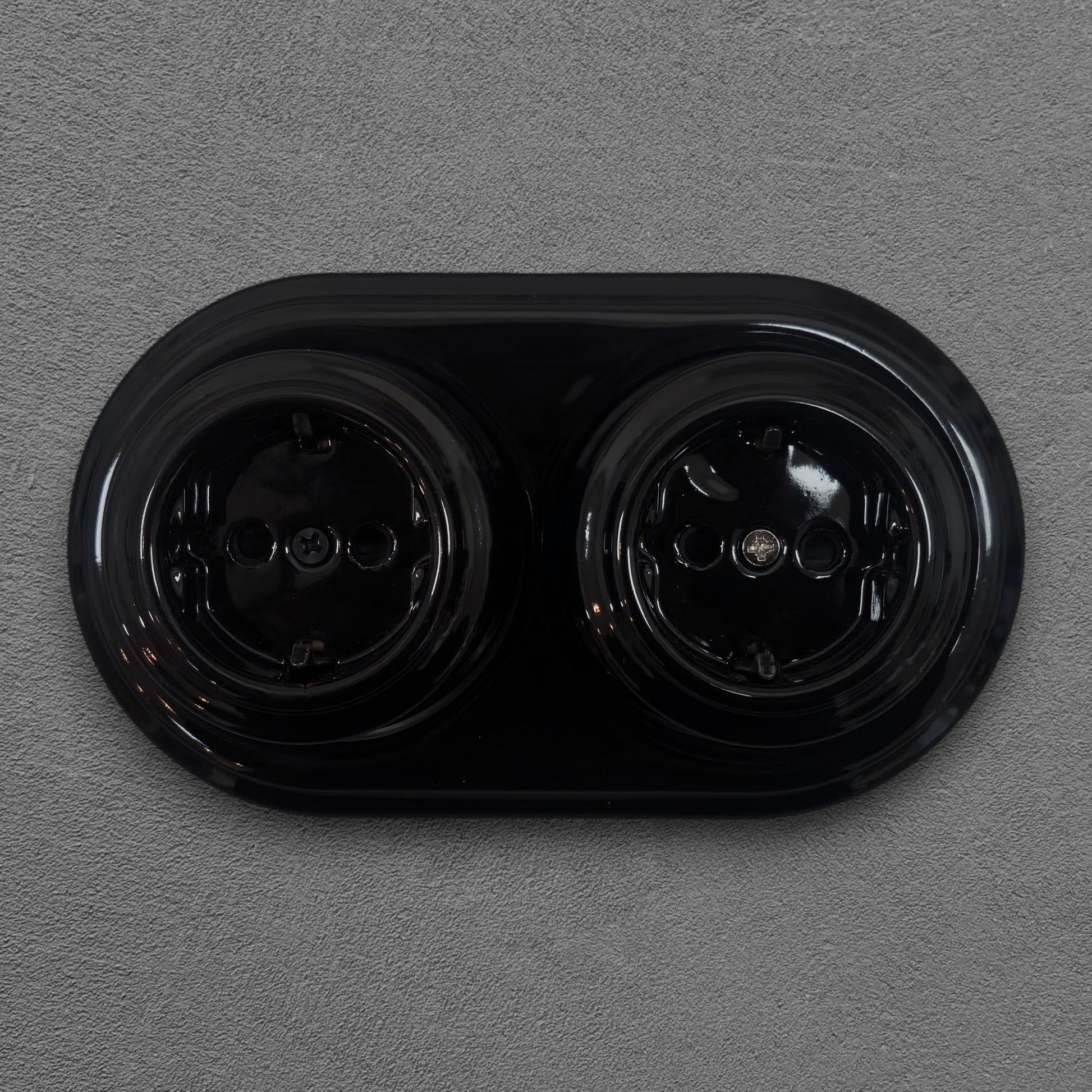 Surface-Mounting Double Frame German Schuko Power Socket Porcelain Loft Retro Electrical Vintage Cottage Ceramic Black