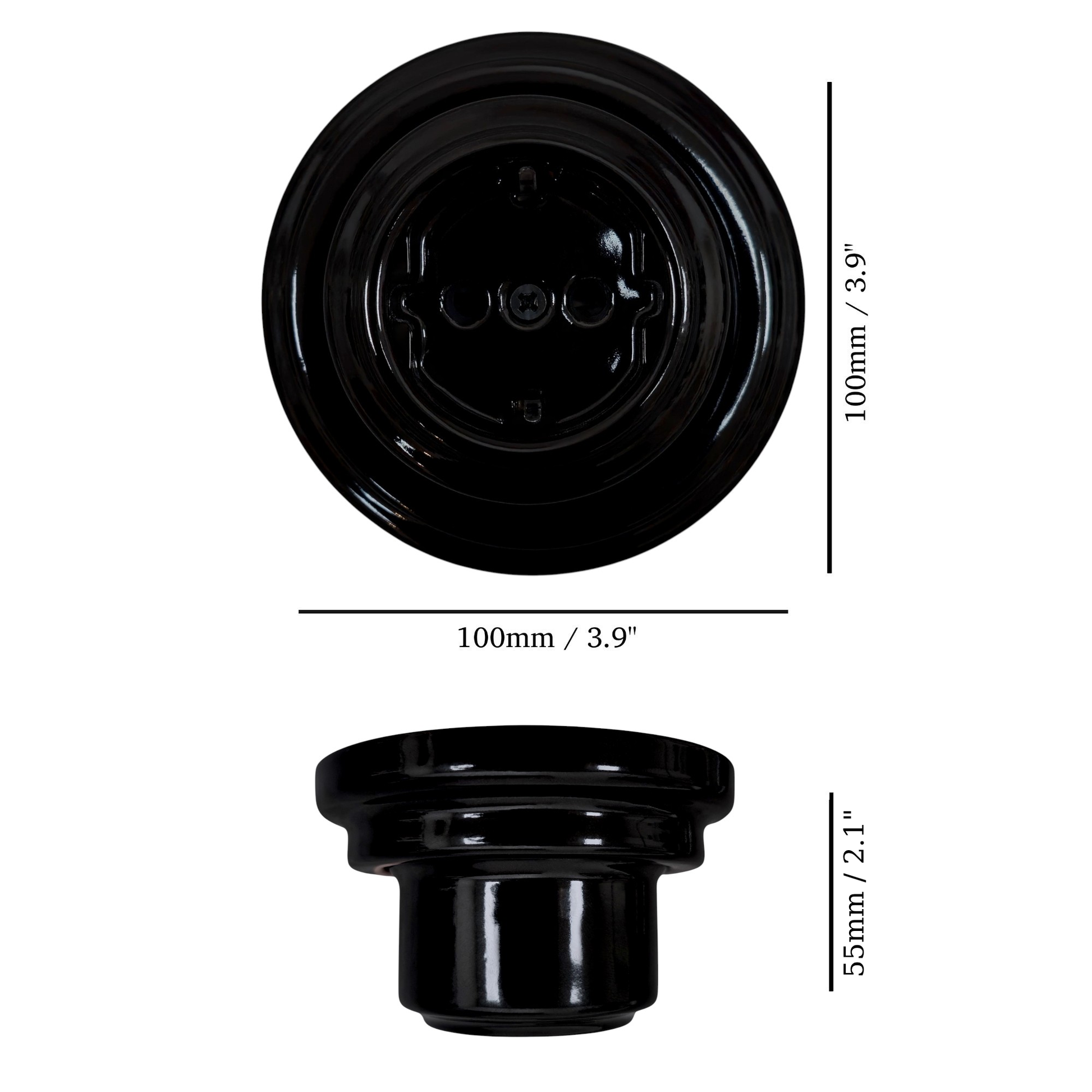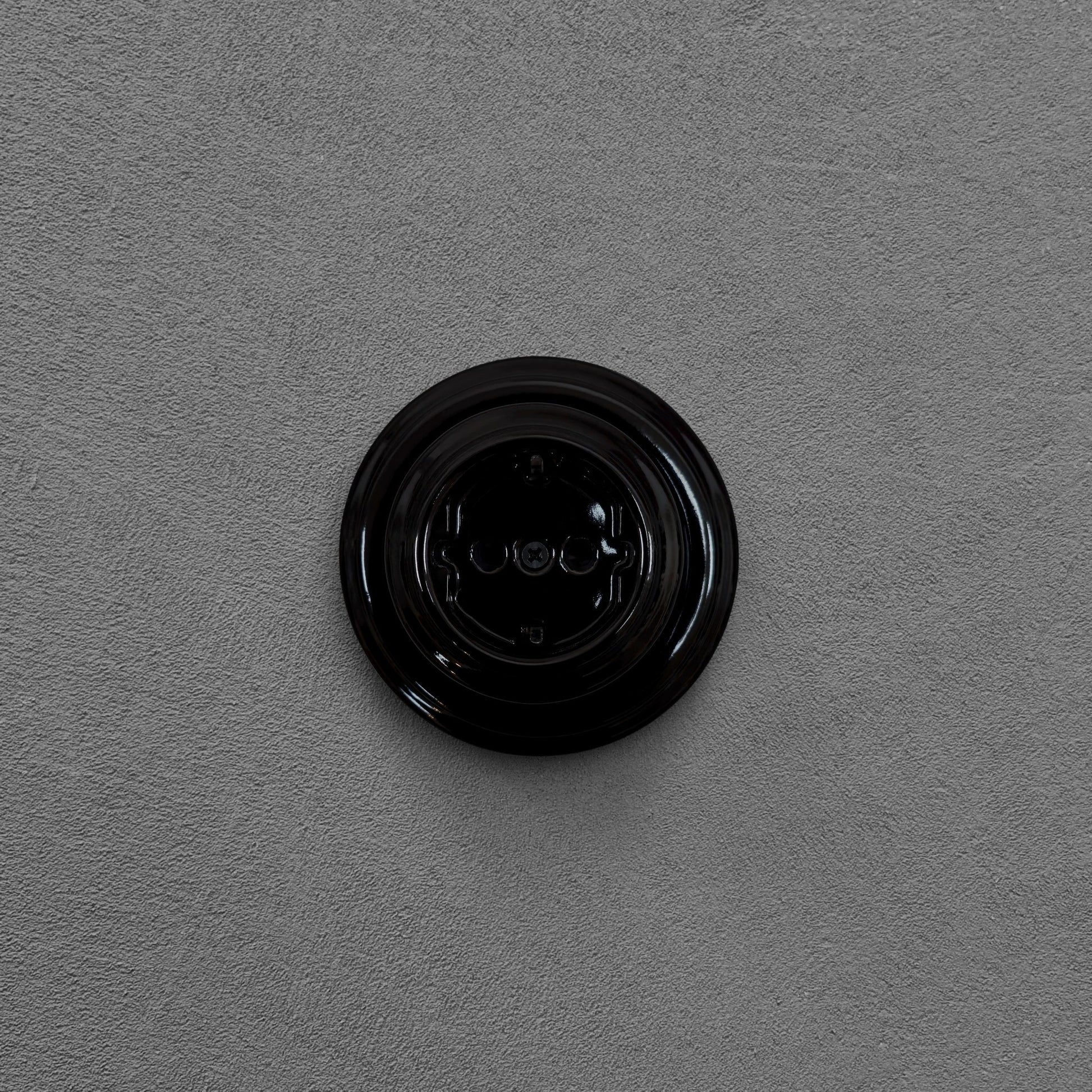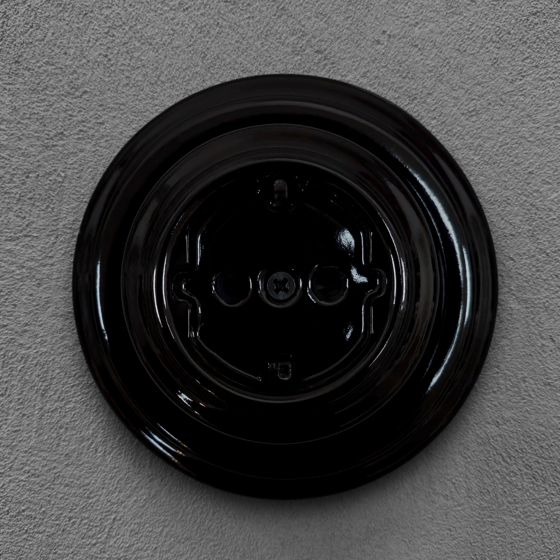 Surface-Mounting German Schuko Power Socket Porcelain Loft Retro Electrical Vintage Cottage Ceramic Black