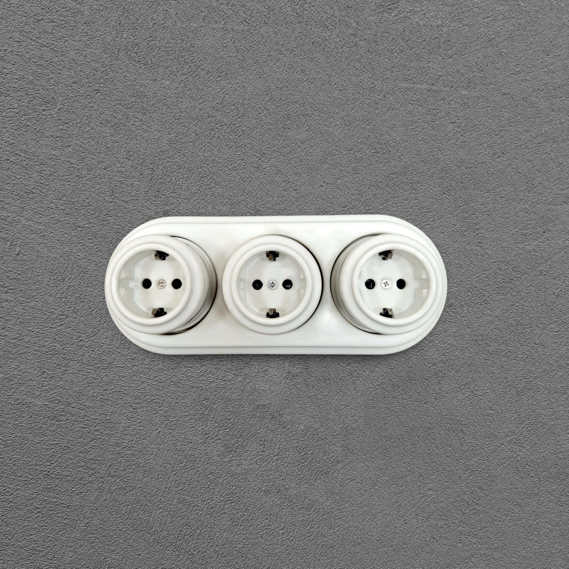 The retro style porcelain triple electrical power socket thanks to its minimalistic and elegant design perfectly fits any interior - from cottage to industrial. It's not only made with high quality materials but also can be used as a decorative accent for your home or other spaces.
