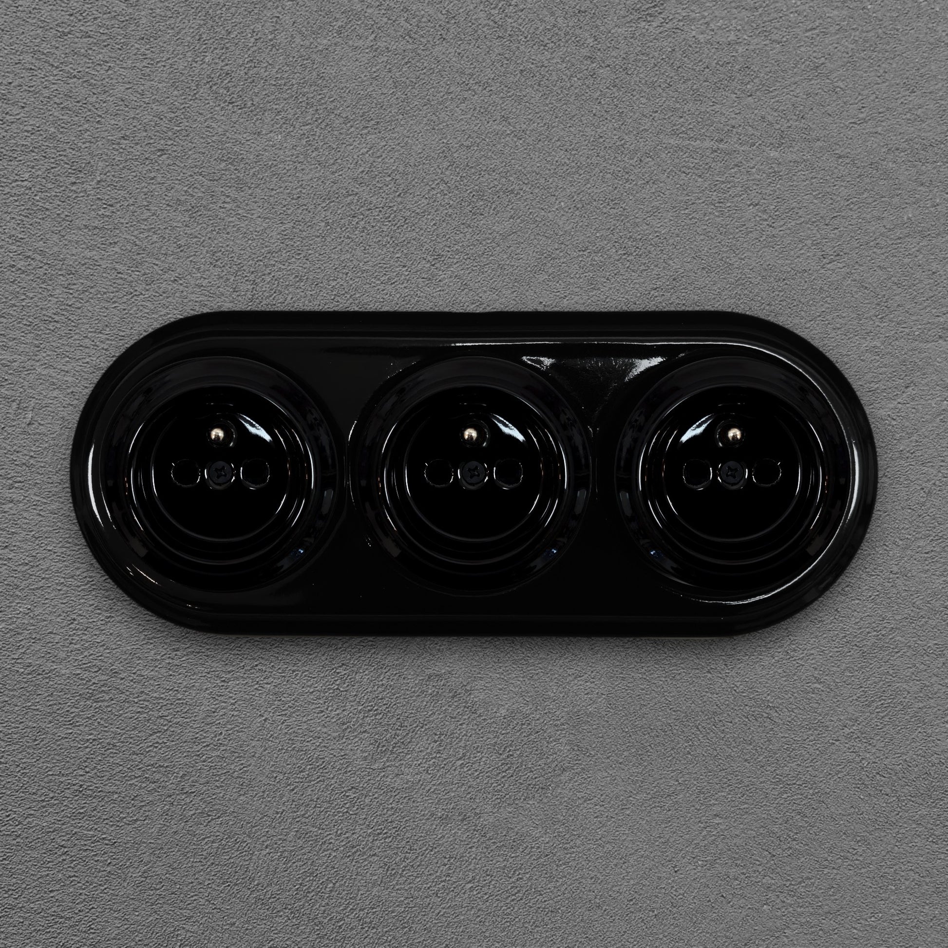 Triple Power French Socket Porcelain Surface Mounted Loft Retro Electrical 3 Socket Vintage Cottage Ceramic Black