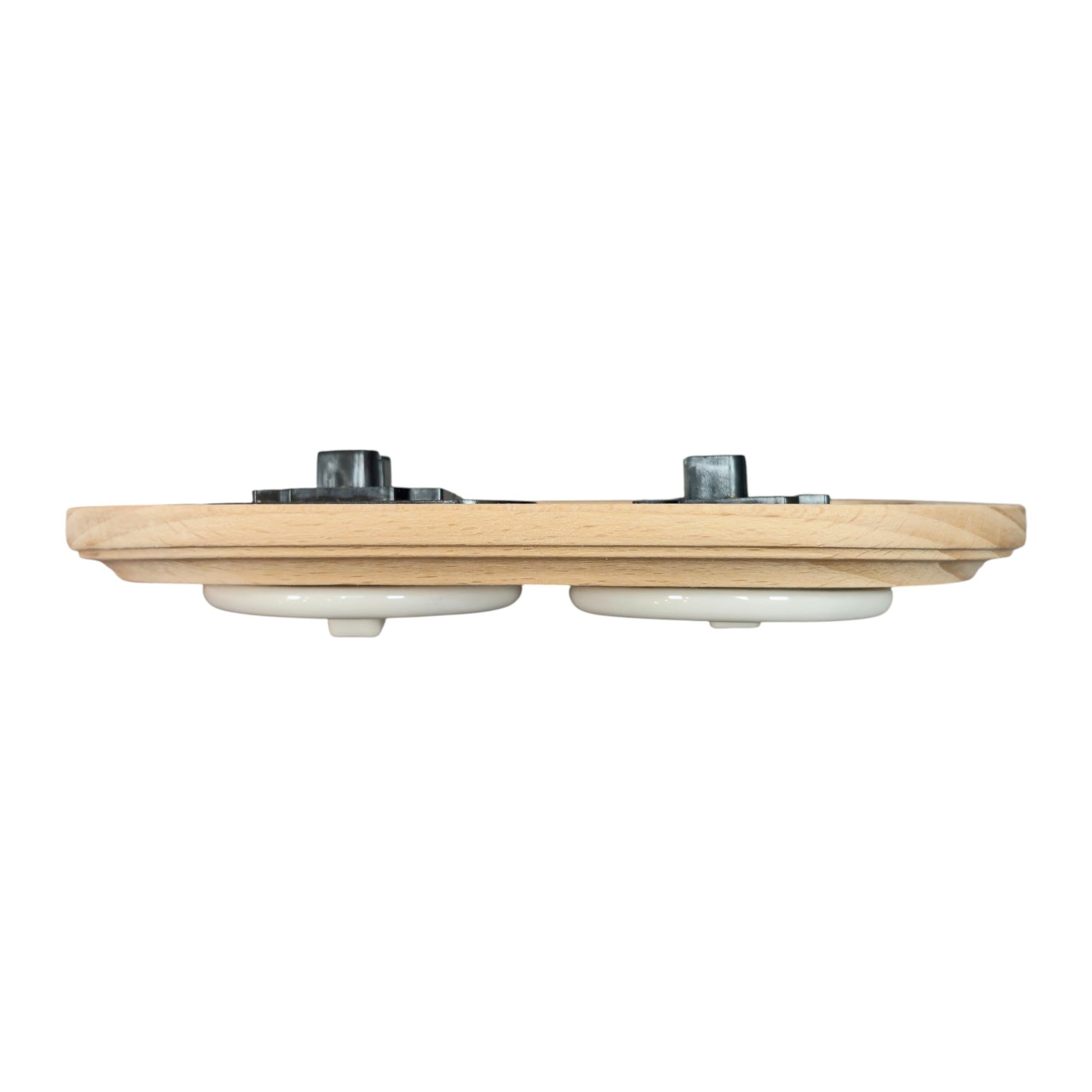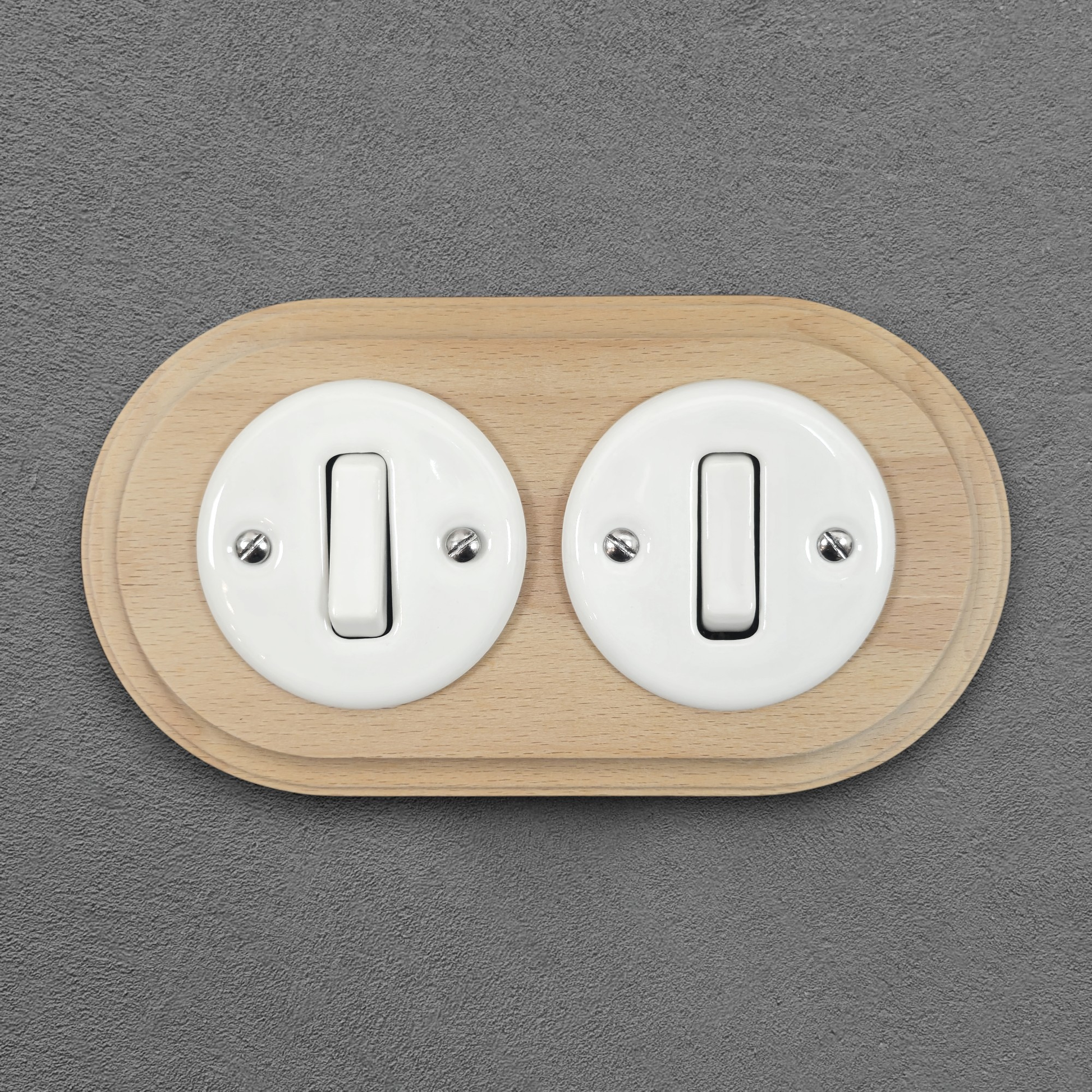 Wooden Frame Double Porcelain Light Switch Loft Retro 1-gang Two-way Flush-Mounting Vintage Cottage Ceramic Natural Wood With White