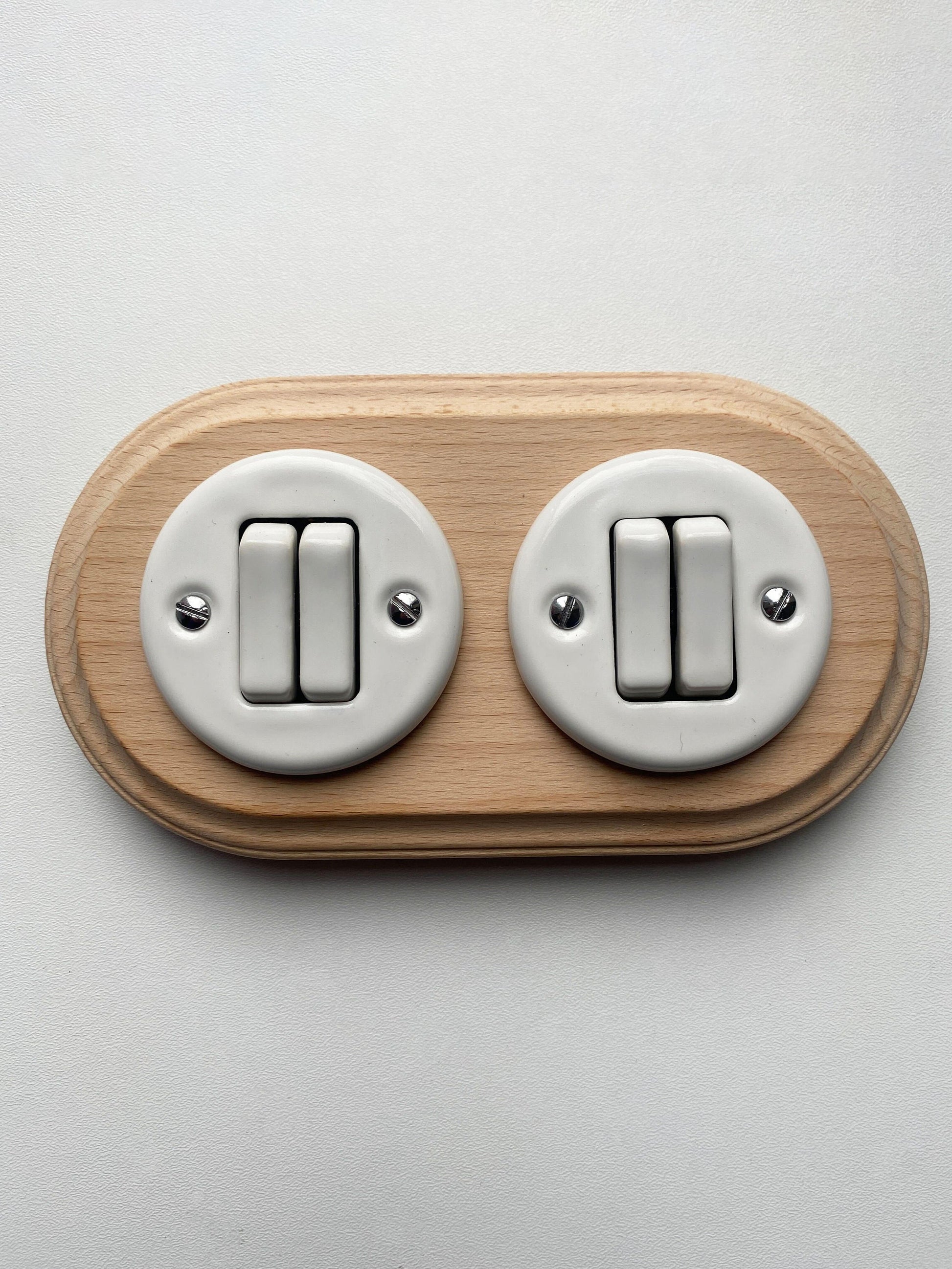 The retro style wooden frame double porcelain button switch thanks to its minimalistic and elegant design perfectly fits any interior - from cottage to industrial. It's not only made with high quality materials but also can be used as a decorative accent for your home or other spaces.