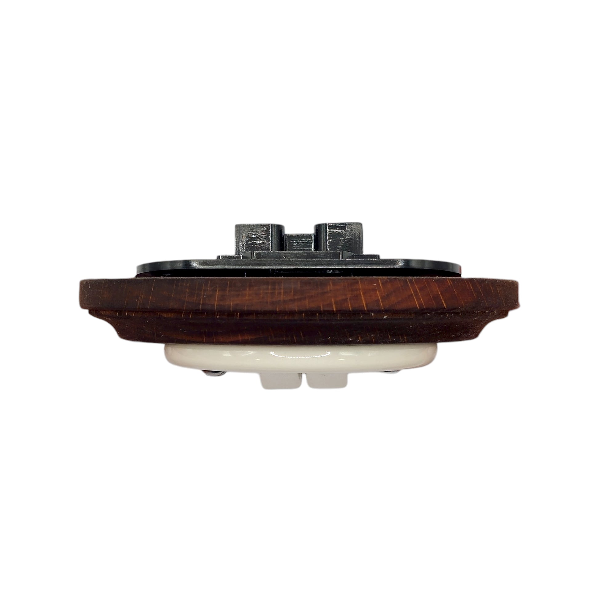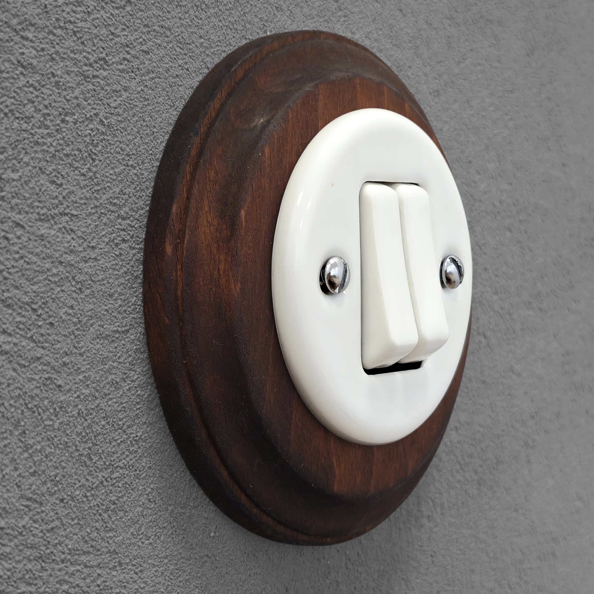 Wooden Frame Porcelain Light Switch Loft Retro 2-gang Two-way Flush-Mounting Vintage Cottage Ceramic Dark Brown With White