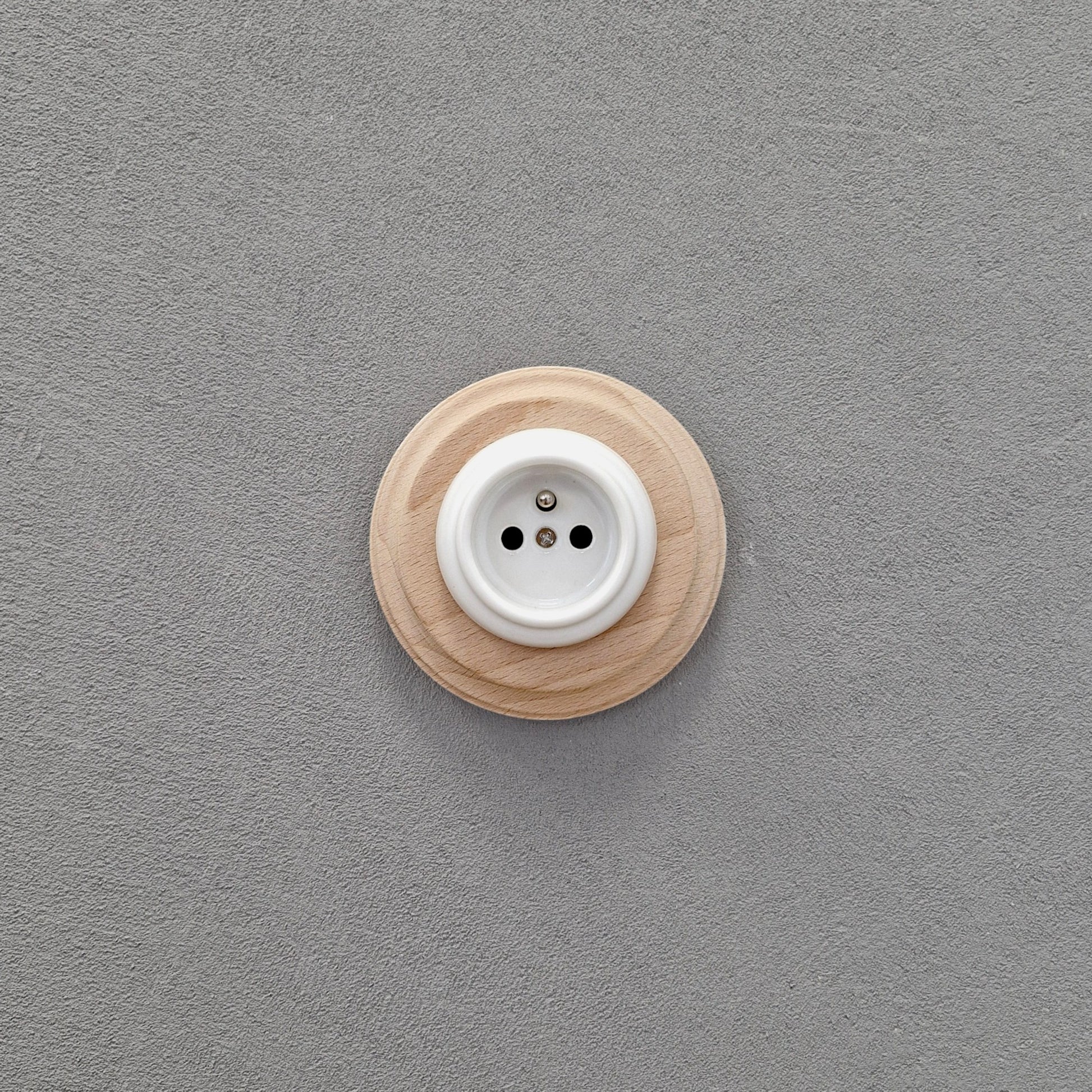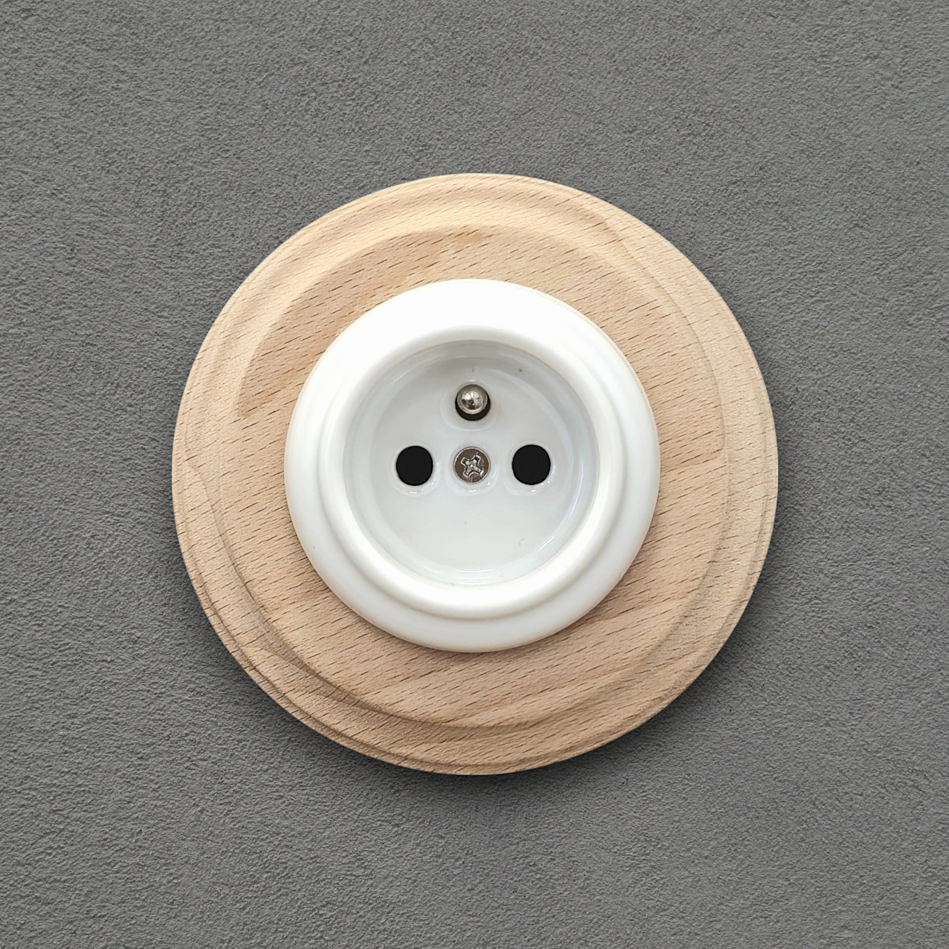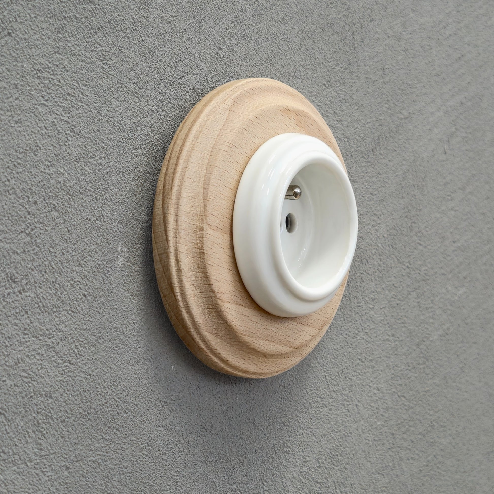 Wooden French Power Socket Porcelain Loft Retro Electrical Flush-Mounting Vintage Cottage Ceramic Natural Beige With White