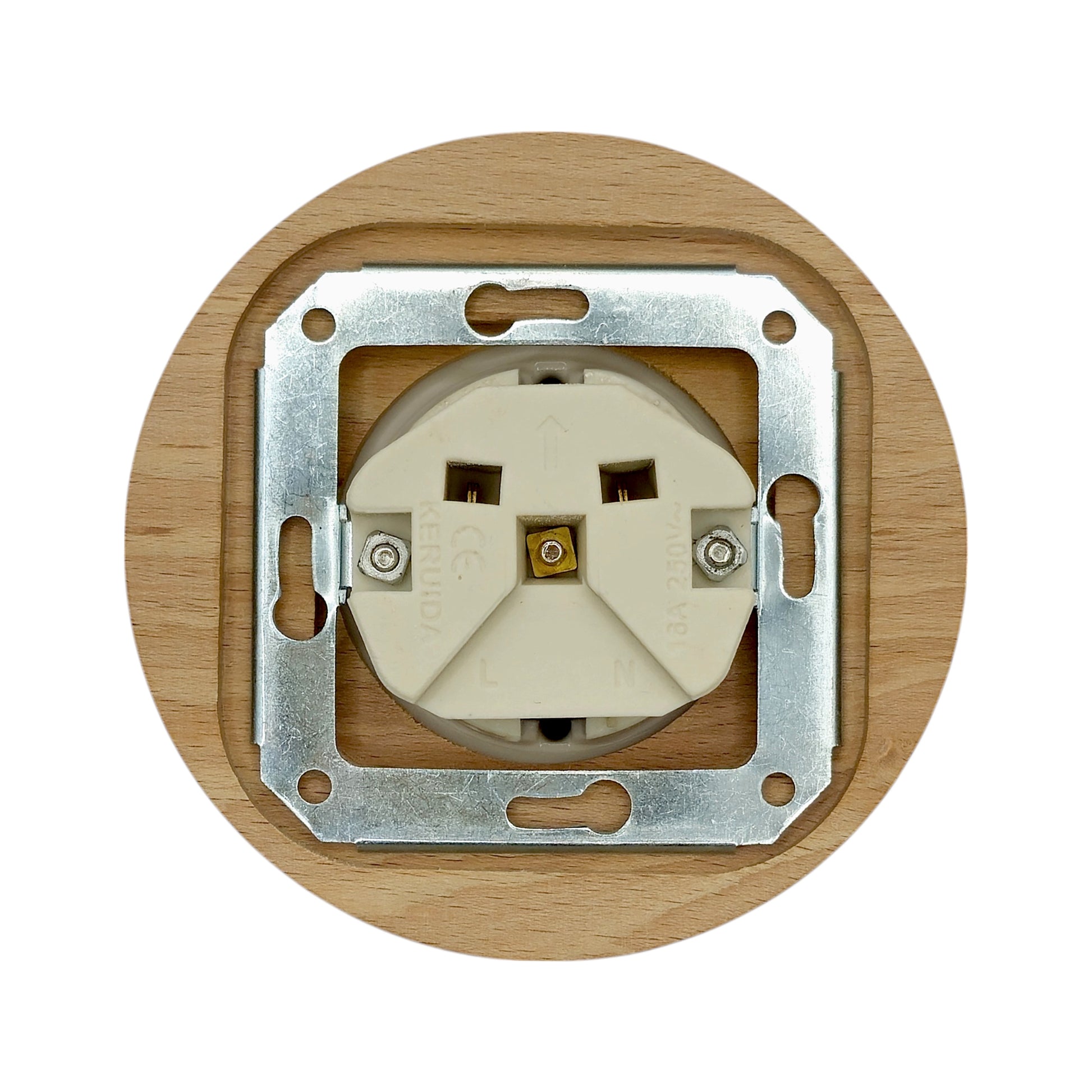 Wooden German Power Socket Porcelain Loft Retro Electrical Flush-Mounting Vintage Cottage Ceramic Natural Beige With White